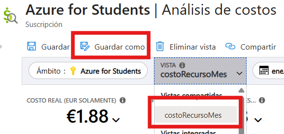Dins d'aquest menú trobarem totes les subscripcions actives pel nostre usuari. A partir d'aquest menú podem consultar el total consumit de la subscripció a la columna "Cost actual"