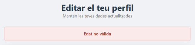 En cas que l'usuari cometi algun error o completi l'operació amb èxit, es mostrarà un missatge a la part superior del formulari